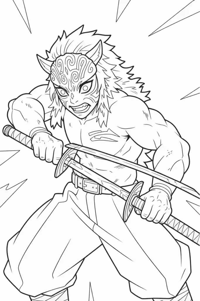 6. Inosuke from Demon Slayer – Boy Anime Character Coloring Pages