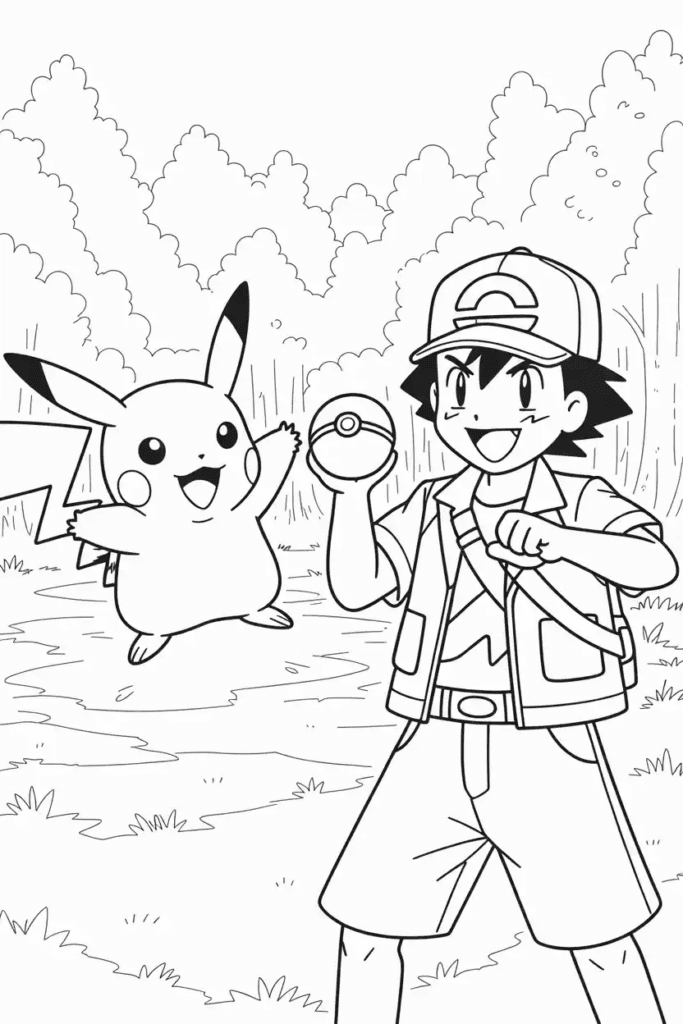 8. Ash and Pikachu Adventure – Free Anime Coloring Pages for Boys