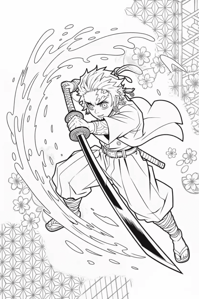 9. Tanjiro Water Breathing Technique – Shonen Anime Coloring Pages