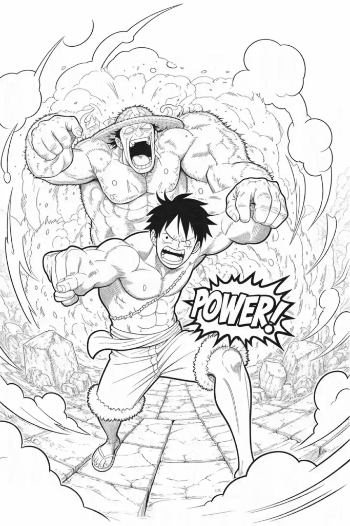 Epic battles define many anime series, and the showdown between Luffy and Kaido in One Piece is one of the most exciting. This coloring sheet highlights anime battle scenes, with intense expressions, clashing energy, and movement lines that challenge kids to think creatively.
