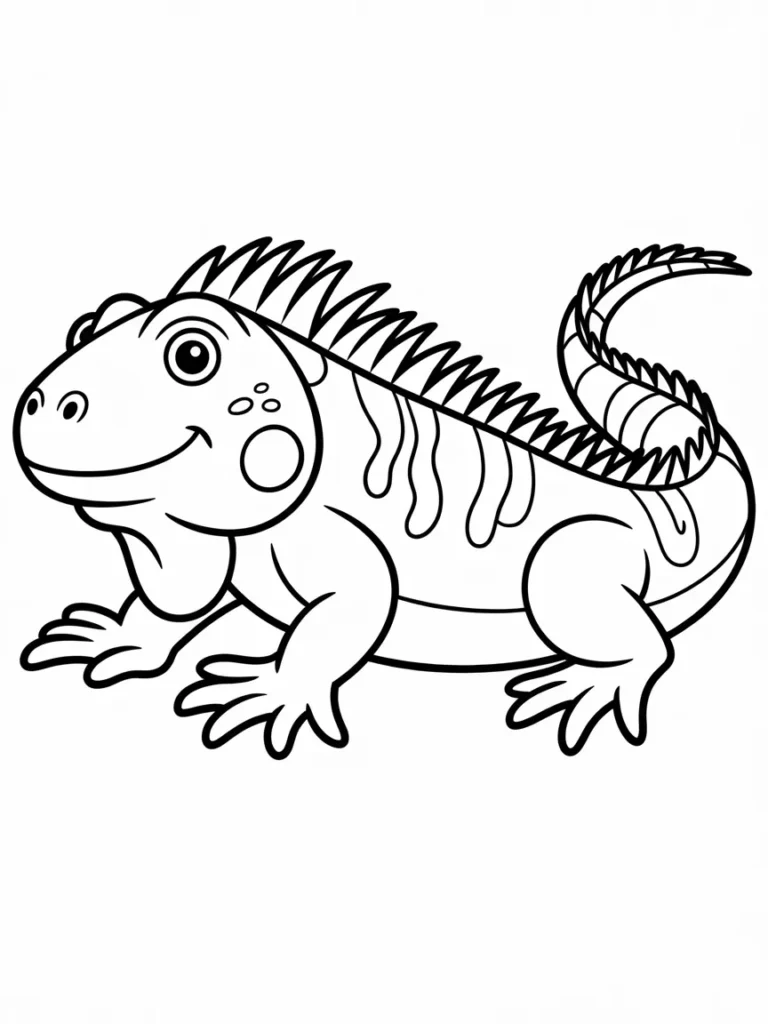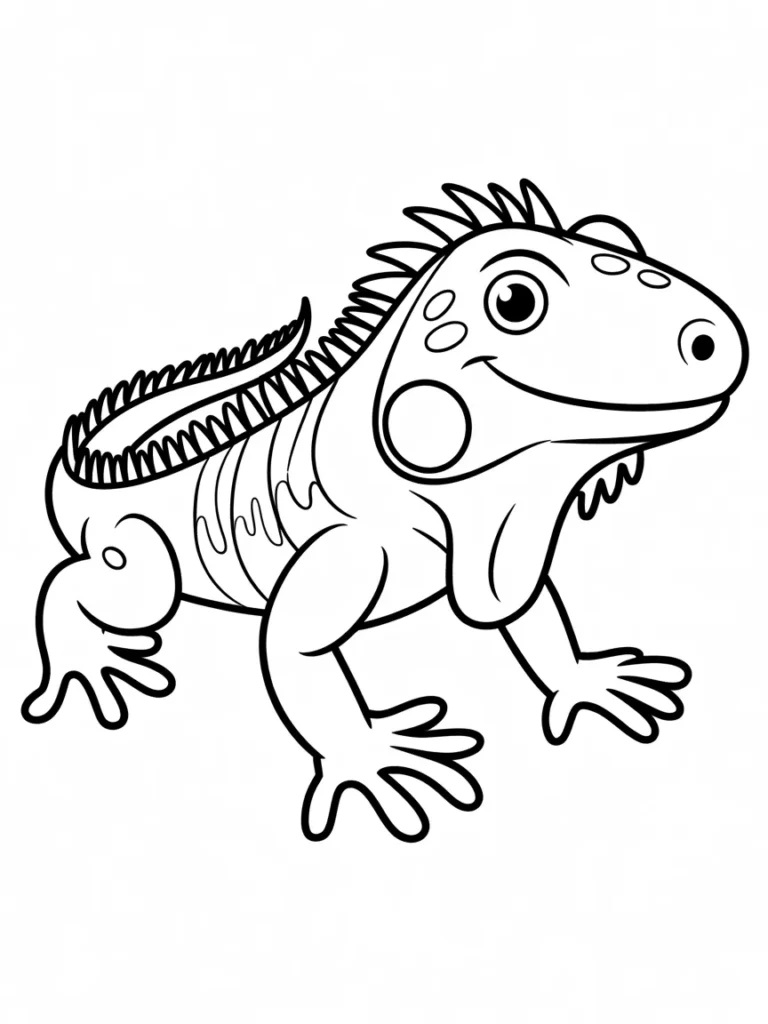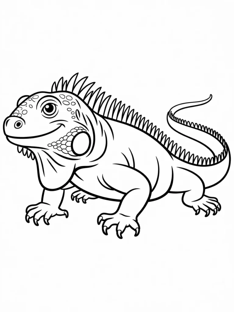 This cartoon-style iguana with big eyes and a round belly is one of the most playful in the set. Great for fans of cute iguana coloring pages or beginners who enjoy bold outlines.