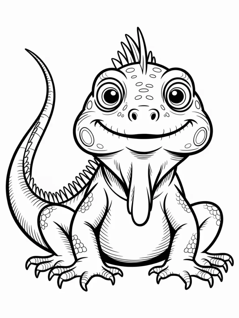 This page features a small, baby iguana with big eyes and a friendly smile. It’s an easy iguana coloring page ideal for toddlers and preschoolers learning to color within lines.