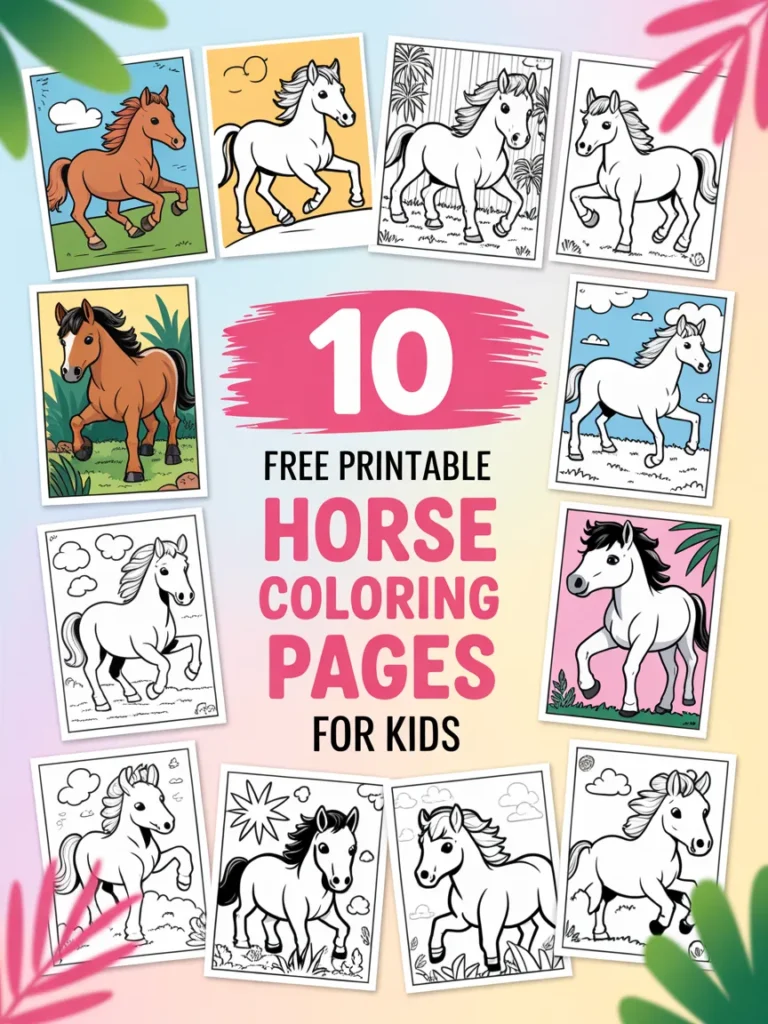 If your child loves horses, ponies, and farm adventures, they’ll adore this beautiful collection of free printable horse coloring pages.